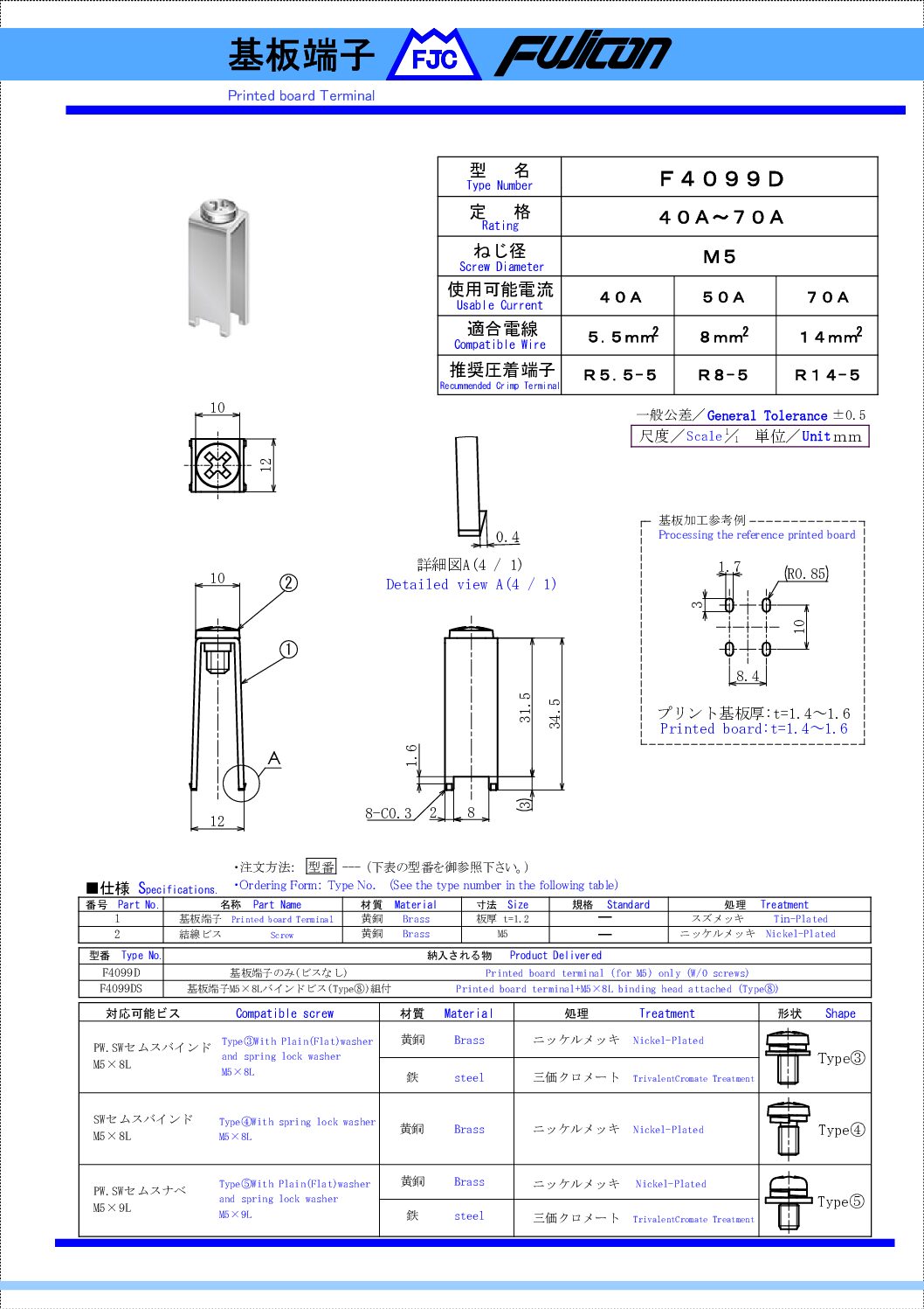 | F4099D | Printed board terminal (M5用) only (w/o screws) |