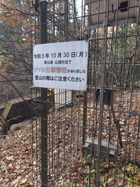 ▲▲▲だるま石ゲートに熊情報!なんと2年前のでした (>_<) 登山道は落ち葉がいっぱい▲▲▲