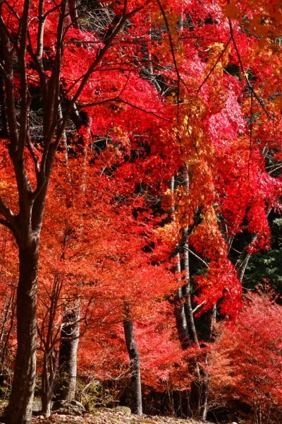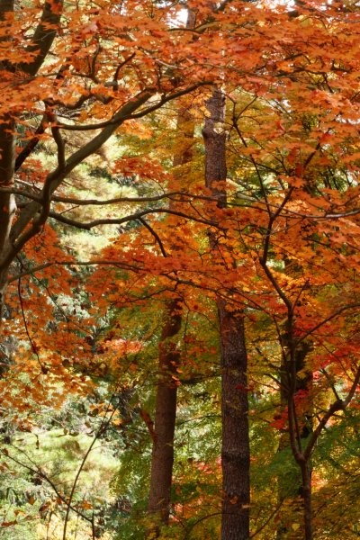 少し薄暗いモミジの木々の下で、私たちは夢中になって写真を撮りました。