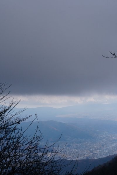 1時間後、三ッ峠山頂に行くのは諦めて、木無山の展望台でおむすびを食べて帰ることにしました。