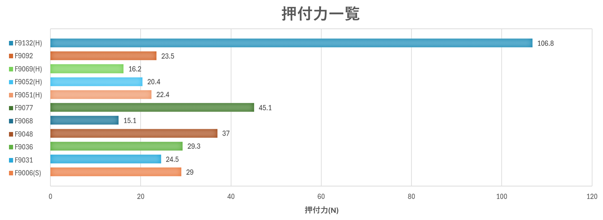 試験結果:すべてのトランジスタクリップで10N以上の押付力が確認できました。