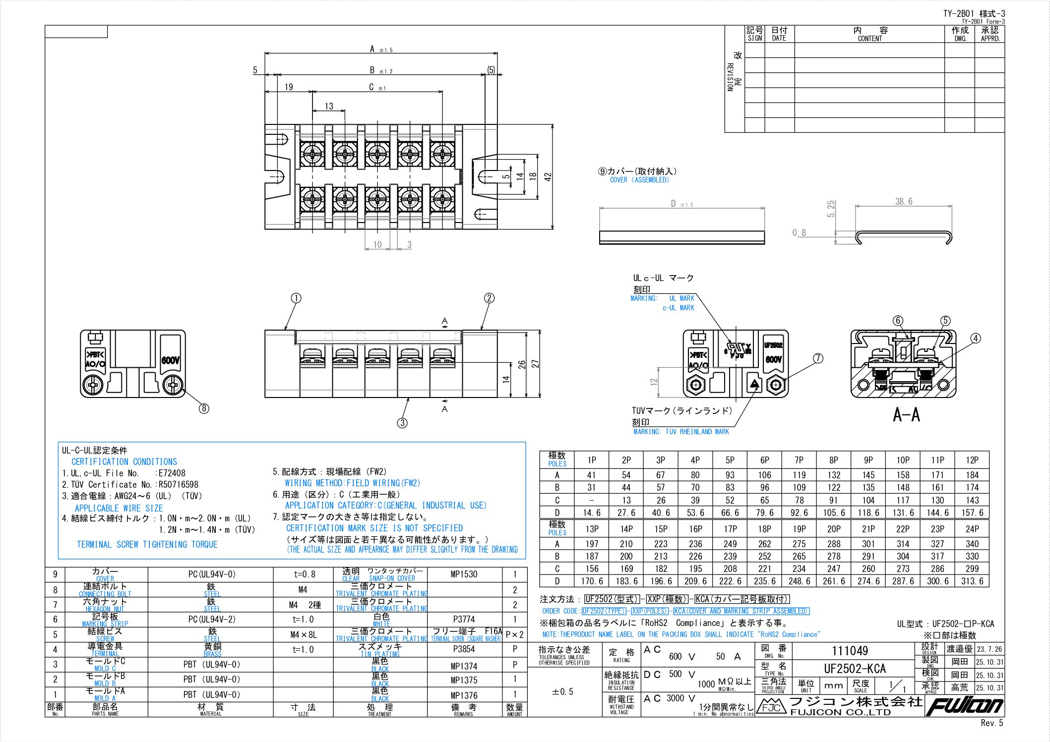 | 1 | モールドA | PBT | UL | 黒色 | ||