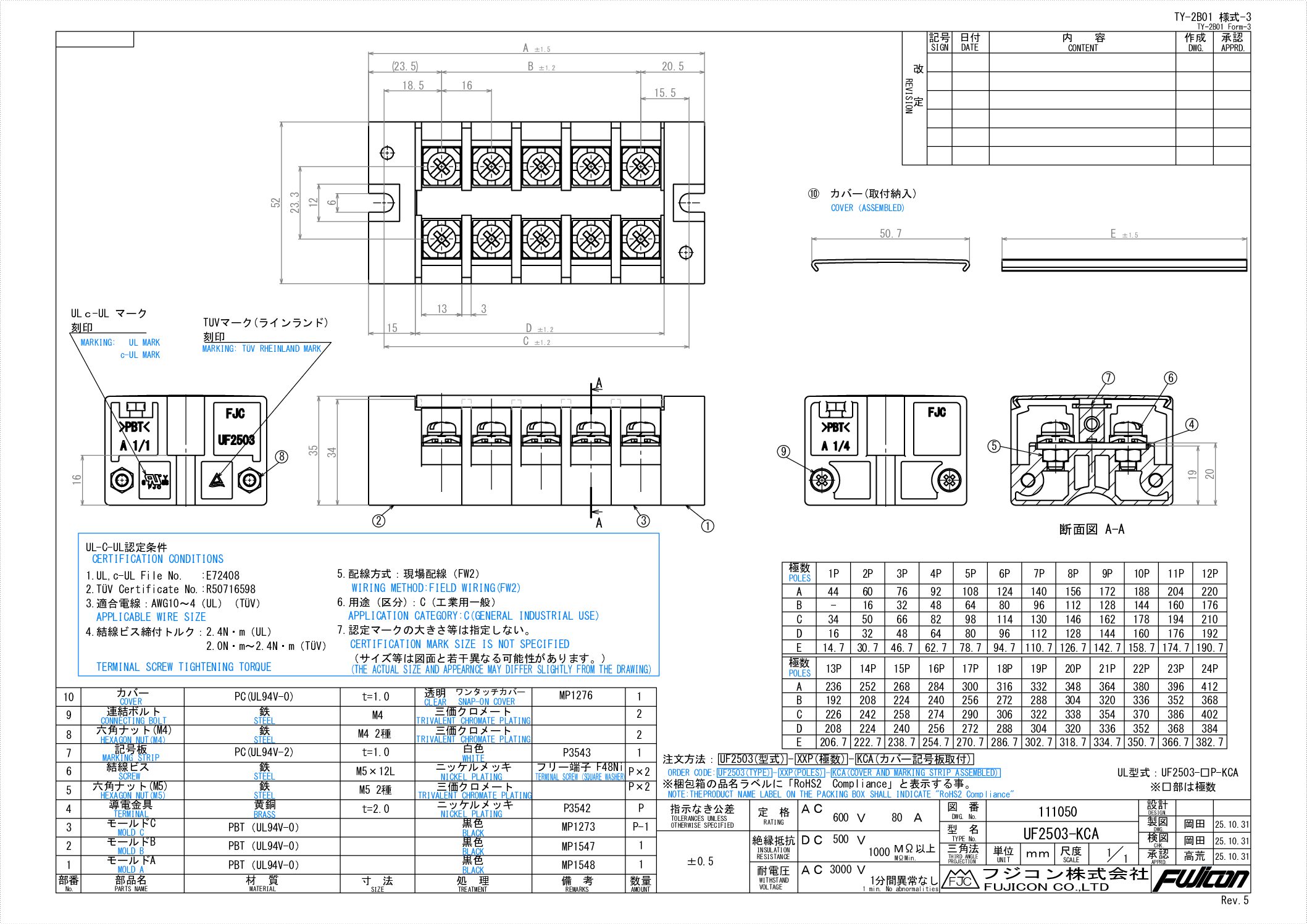 | 1 | モールドA | PBT | UL | 黒色 | ||
