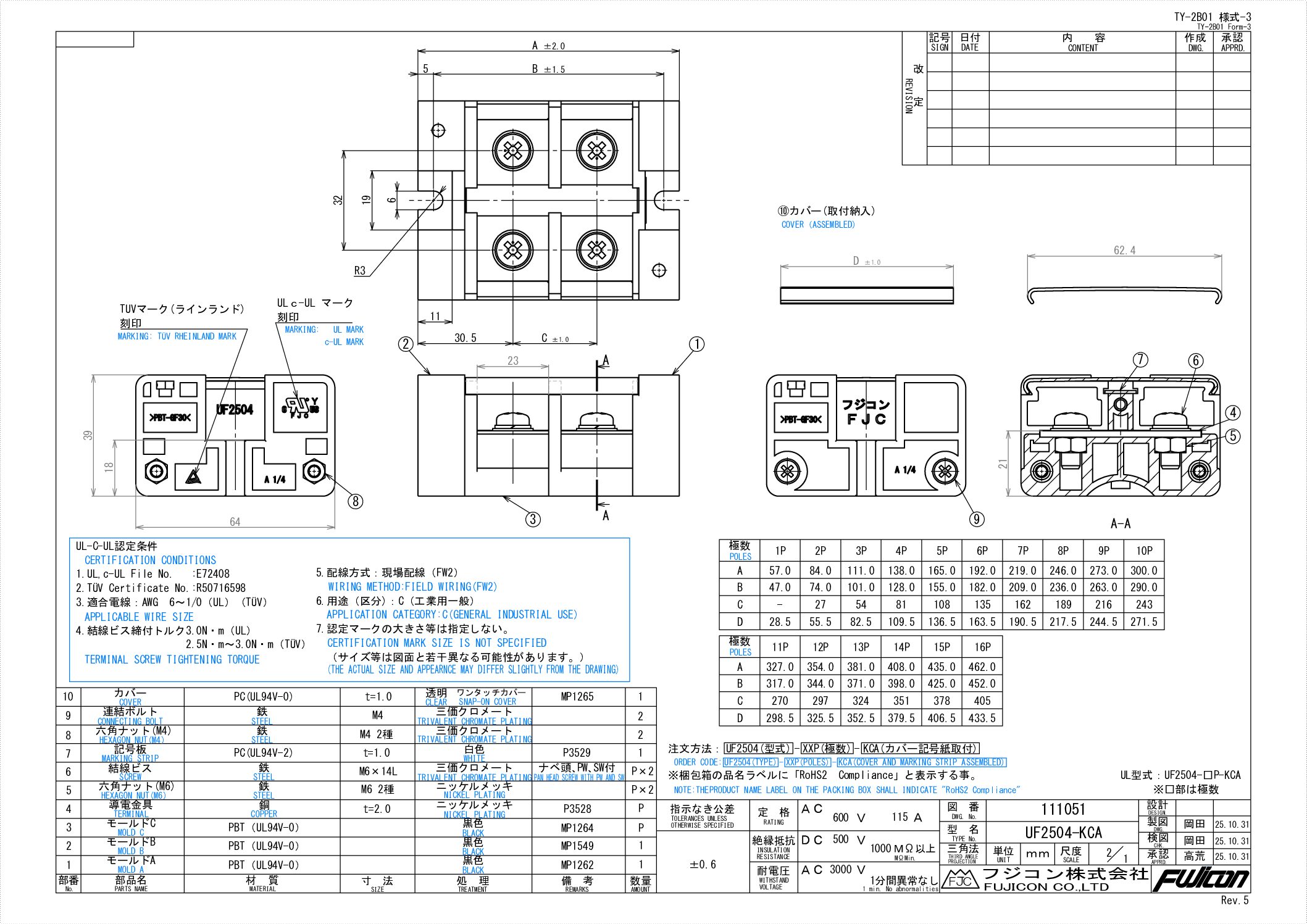 | 1 | モールドA | PBT | UL | 黒色 | ||