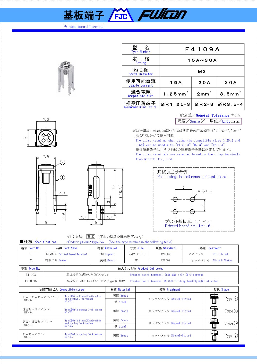 | F4109A | 基板端子(M3用)のみ(ビスなし) |